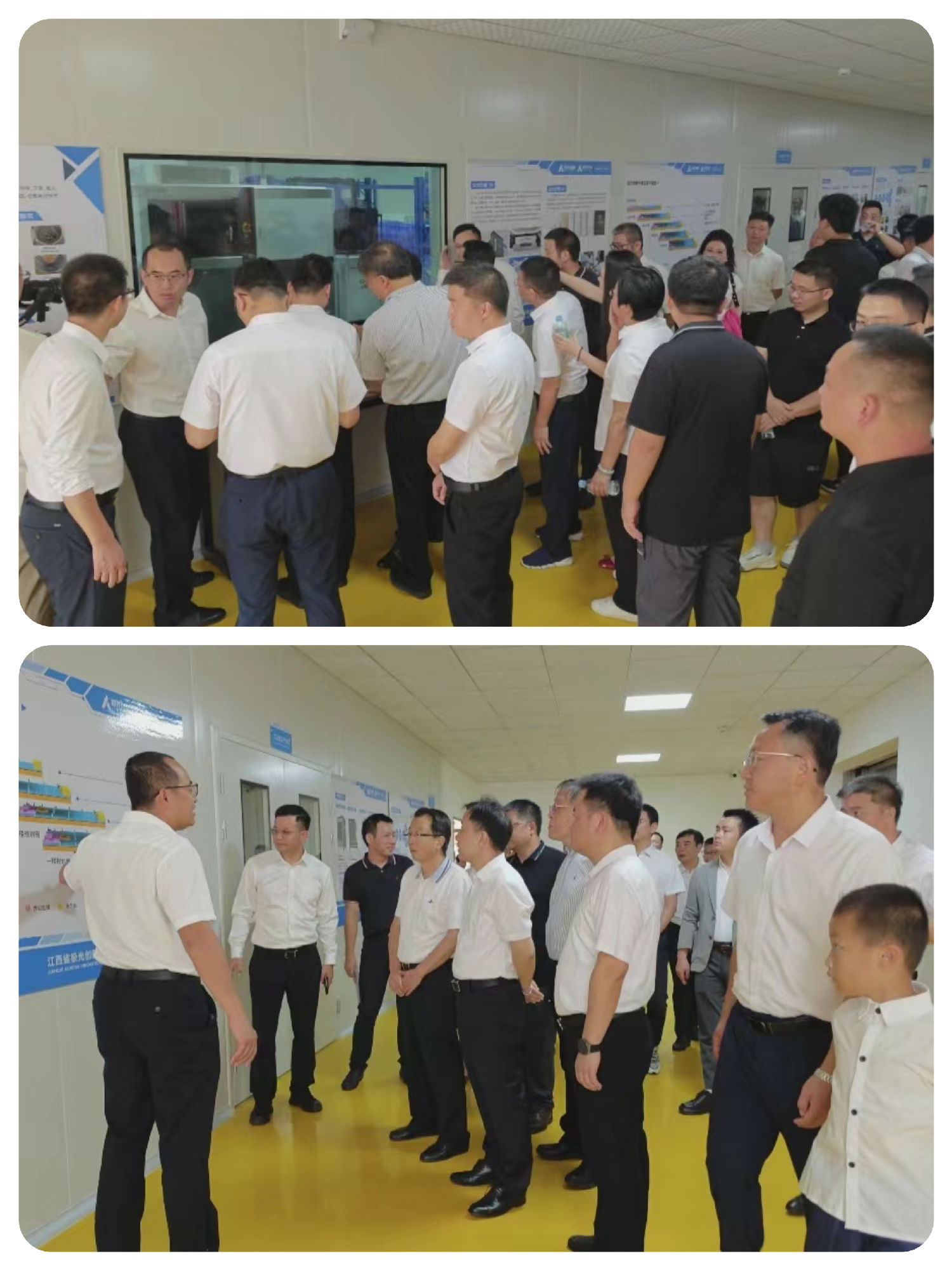 投產揭牌儀式后,與會人員還來到了江西省極光創新有限公司生產基地參觀了極光創新全新升級千級無塵車間和智能生產線,深入了解了生產線的先進設備、智能操作和創新技術,近距離體驗到了高效、智能的產品理念和科技創造的魅力。