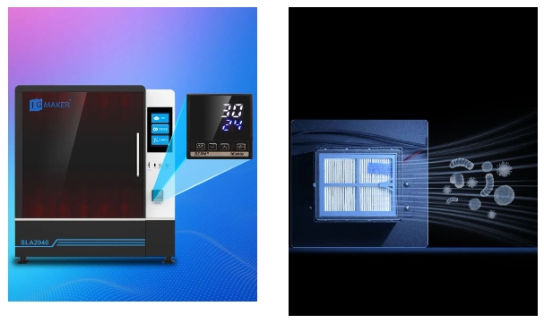 SLA2040還配置了多層空氣過濾網,有效凈化打印環境和料池樹脂異味,讓打印環境更舒適干凈!