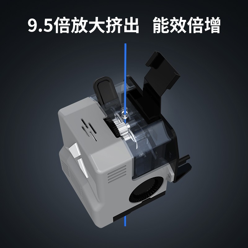 300*300*350mm最大成型空間·9.5倍放大擠出,使出料更均勻,成型更出色,搭載智能風扇控制系統,讓高達8500r/min的轉速降低噪音,還可以模型散熱更全面的同時高速打印