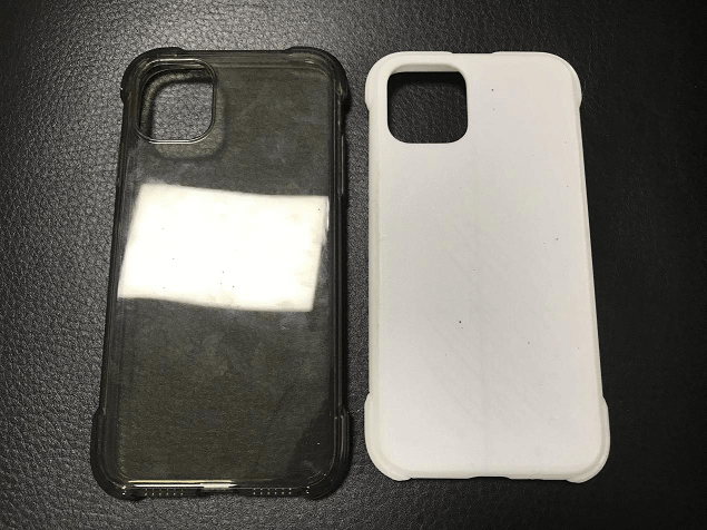 3D打印手機殼白模展示,對比實物圖,可以看得出來,大小尺寸經(jīng)過研發(fā)工程師的修改,更合適配套新款手機尺寸。